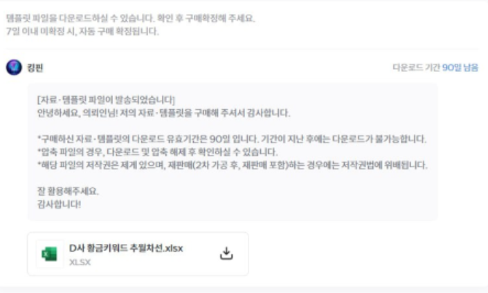 구매를 하게 되면, 바로 엑셀로 자료를 전달 받을 수 있어서 이른시간에 찾았음에도 바로 받을 수 있어서 참 좋네요.